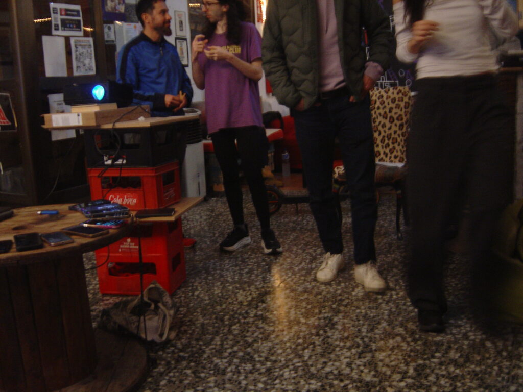La performance activó una dimensión comunitaria esencial. Las voces locales aportaron matices, respiraciones distintas. El viento exterior encontraba su correspondencia en el flujo interior de cada cuerpo. El sonido, el vídeo y la presencia física se consolidaron como herramientas de análisis y producción.