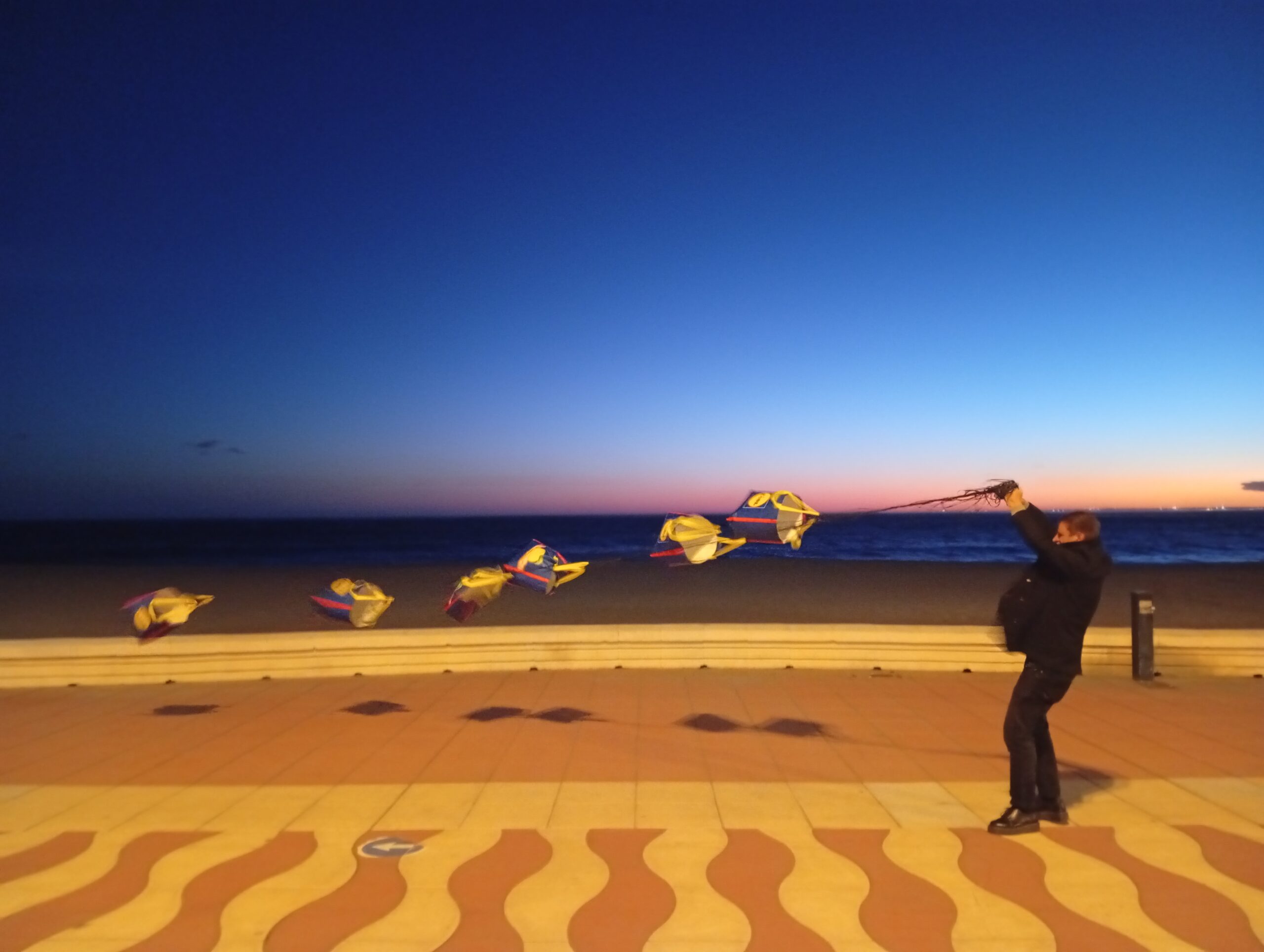 Comencé a comprar bolsas y a utilizarlas como cometas. Las elevaba en espacios abiertos y dejaba que el viento las tensara y deformara. Ese gesto transformaba un objeto de consumo en dispositivo escultórico. El viento se hacía visible; la circulación de mercancías encontraba un eco atmosférico. El transporte logístico se convertía en transporte aéreo.